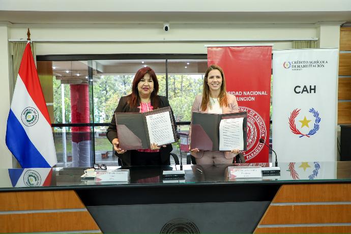 La Rectora de la UNA, Prof. Dra. Zully Concepción Vera de Molinas, y la Presidenta del CAH, Msc. Ing. Agr. Amanda León Alder, rubricaron este importante compromiso que permitirá: