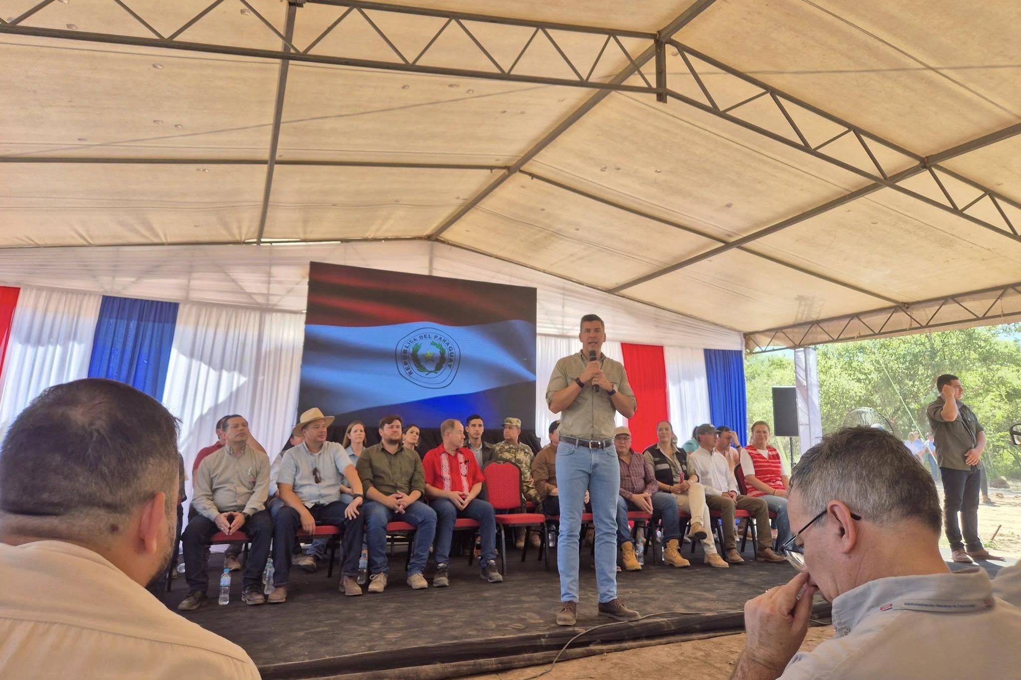 La Presidenta del CAH, Amanda León, acompañó al Presidente Santiago Peña, al Ministro del MUVH, Juan Carlos Baruja, al Gobernador de Boquerón, Harold Bergen, y a otras autoridades en el acto de inauguración de 132 viviendas correspondientes a los proyectos “Pro-Vivienda Urbana” para la comunidad indígena del Pueblo Guaraní y la comunidad indígena “San Miguel Tsivoijot”.